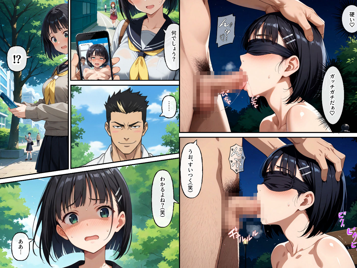 後半は一部始終を写真に収めていた男子のいいなりで深夜の公園で乱交騒ぎです(*’ω’*)